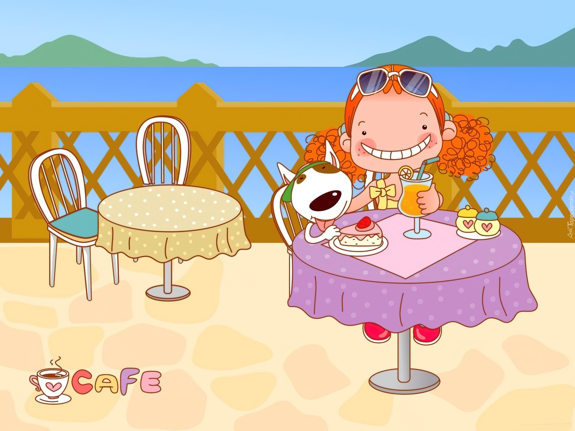 Edytor tapety: Dziecko, Pies, Kawiarnia, Herbatka