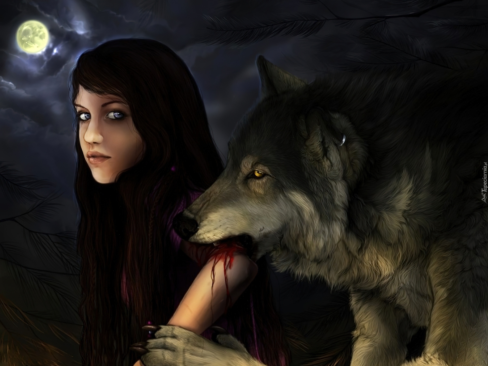 Edytor tapety: Kobieta, Wilk, Księżyc, Noc