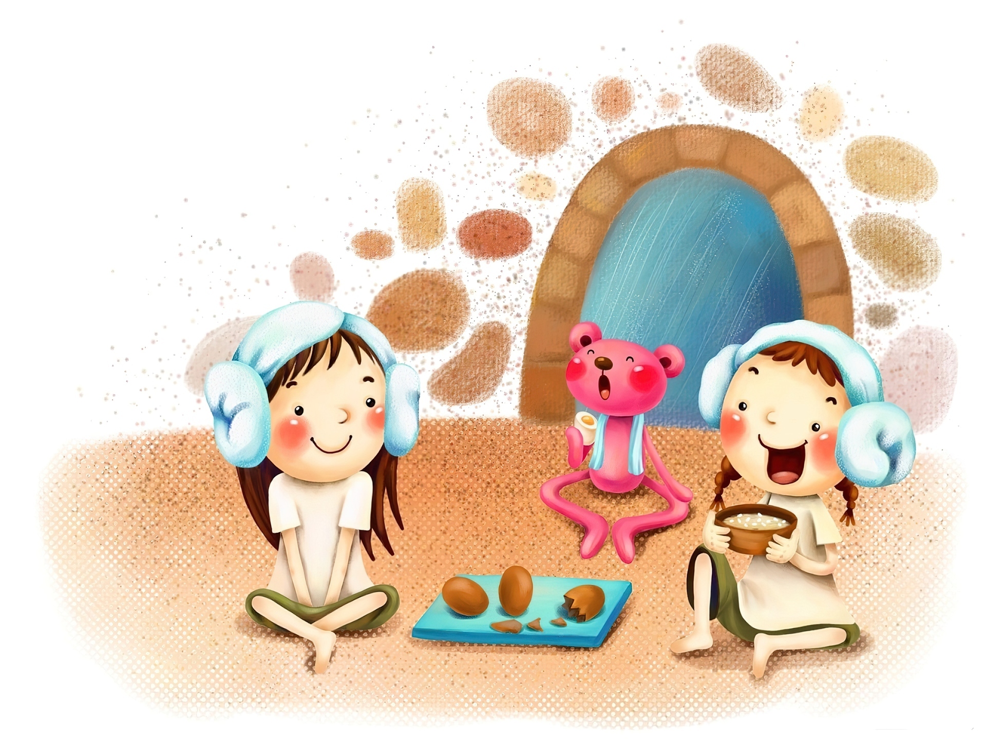 Edytor tapety: Dzieci, Misiu, Posiłek
