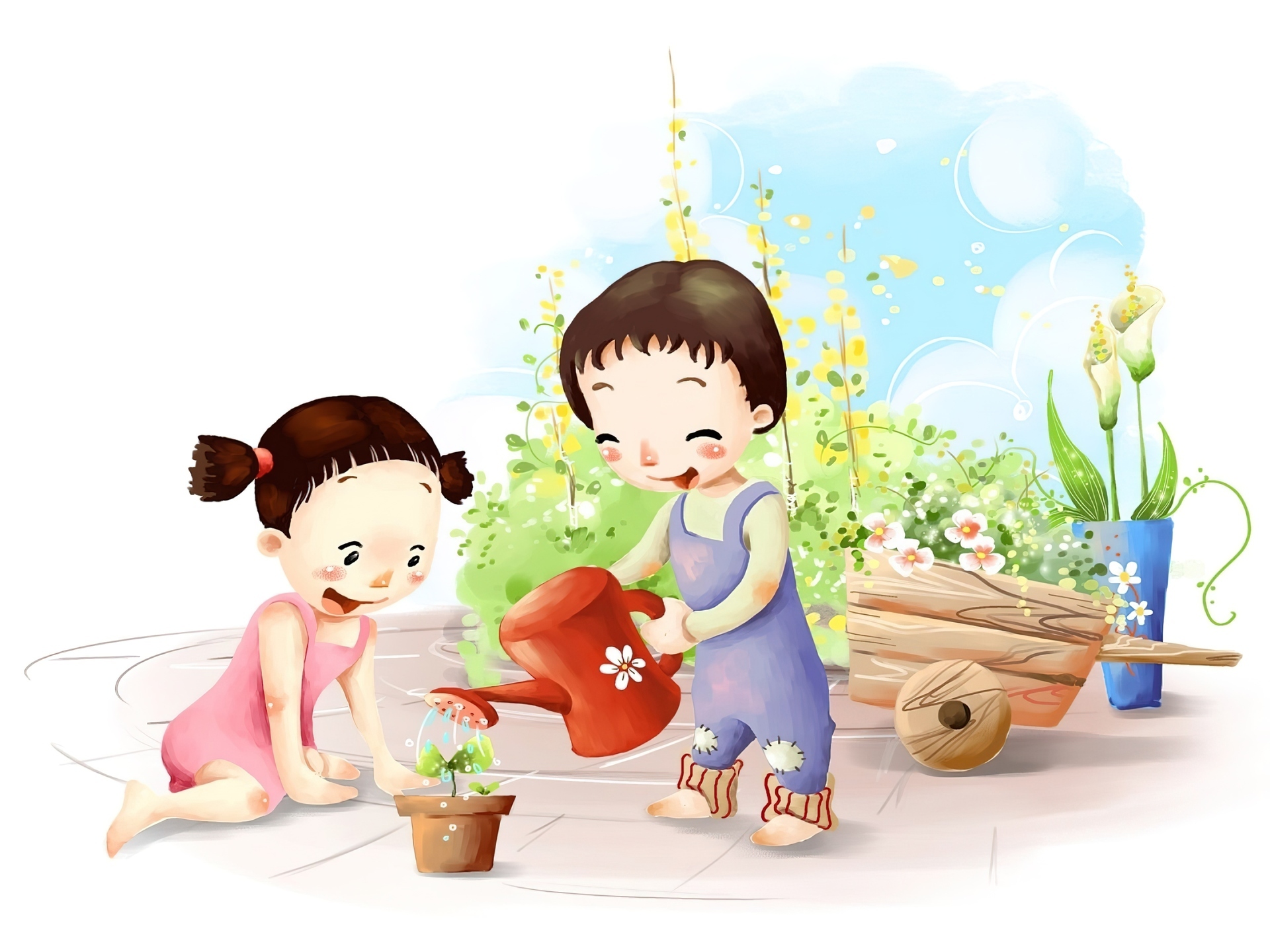 Edytor tapety: Dzieci, Ogródek, Podlewanie
