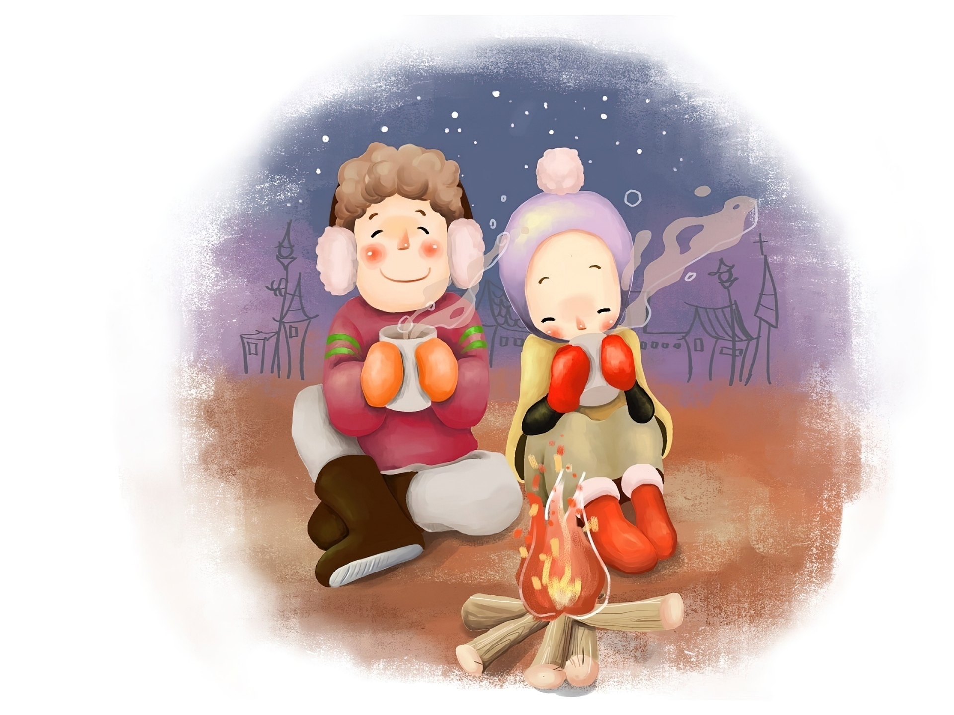 Edytor tapety: Dzieci, Ognisko, Herbata