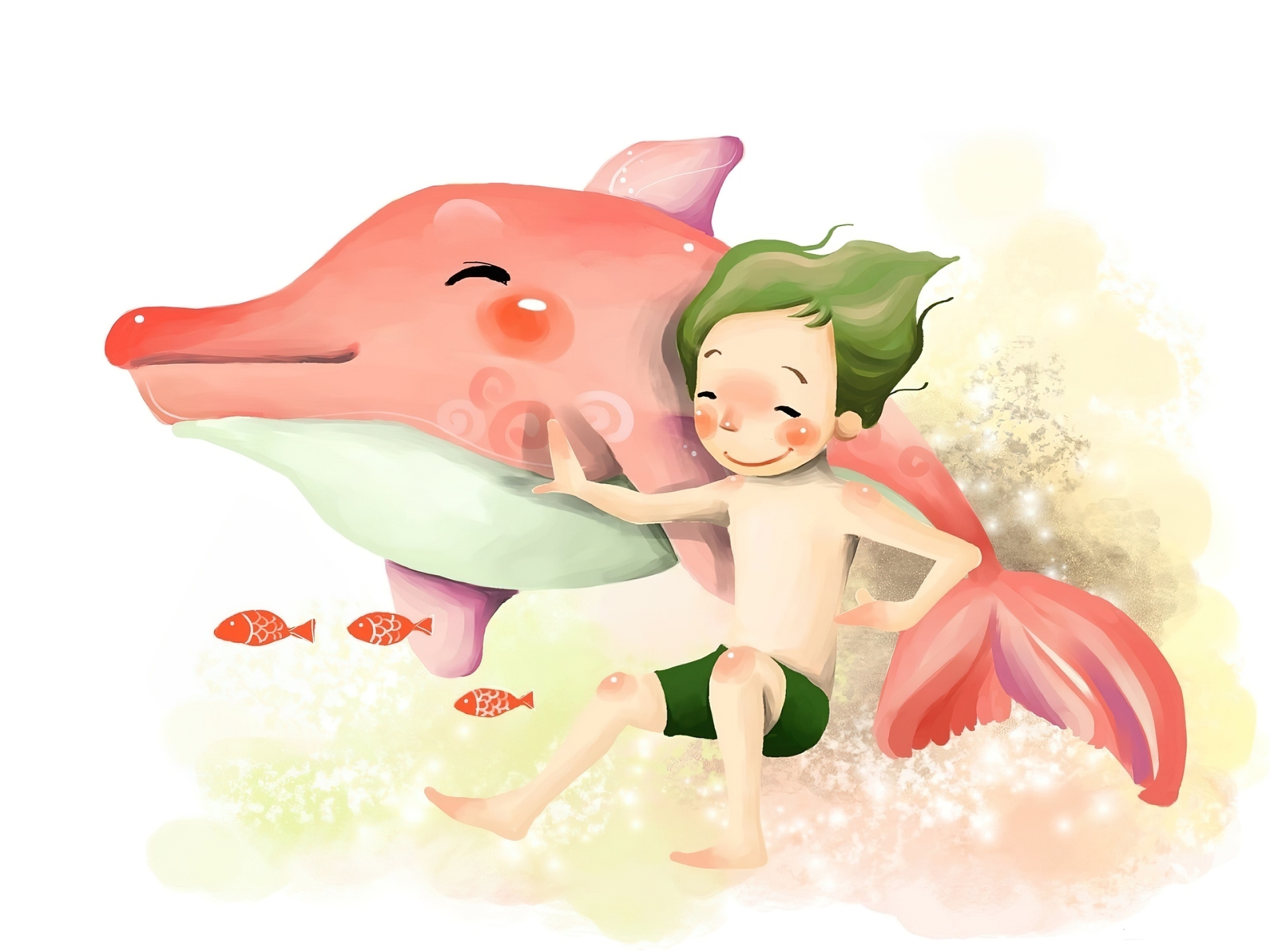 Edytor tapety: Dziecko, Delfin, Ryby