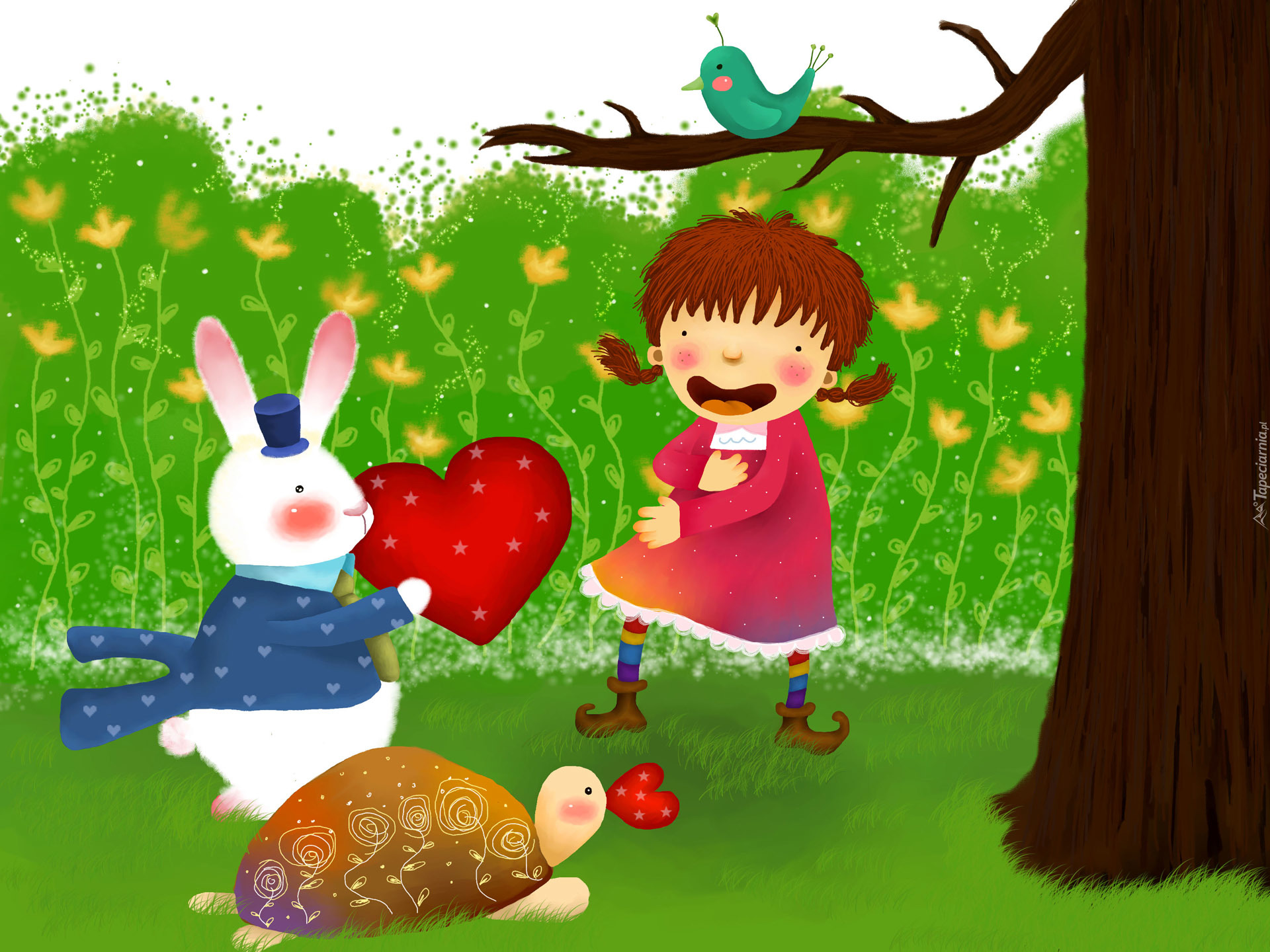 Edytor tapety: Dziecko, Park, Zwierzątka, Serca