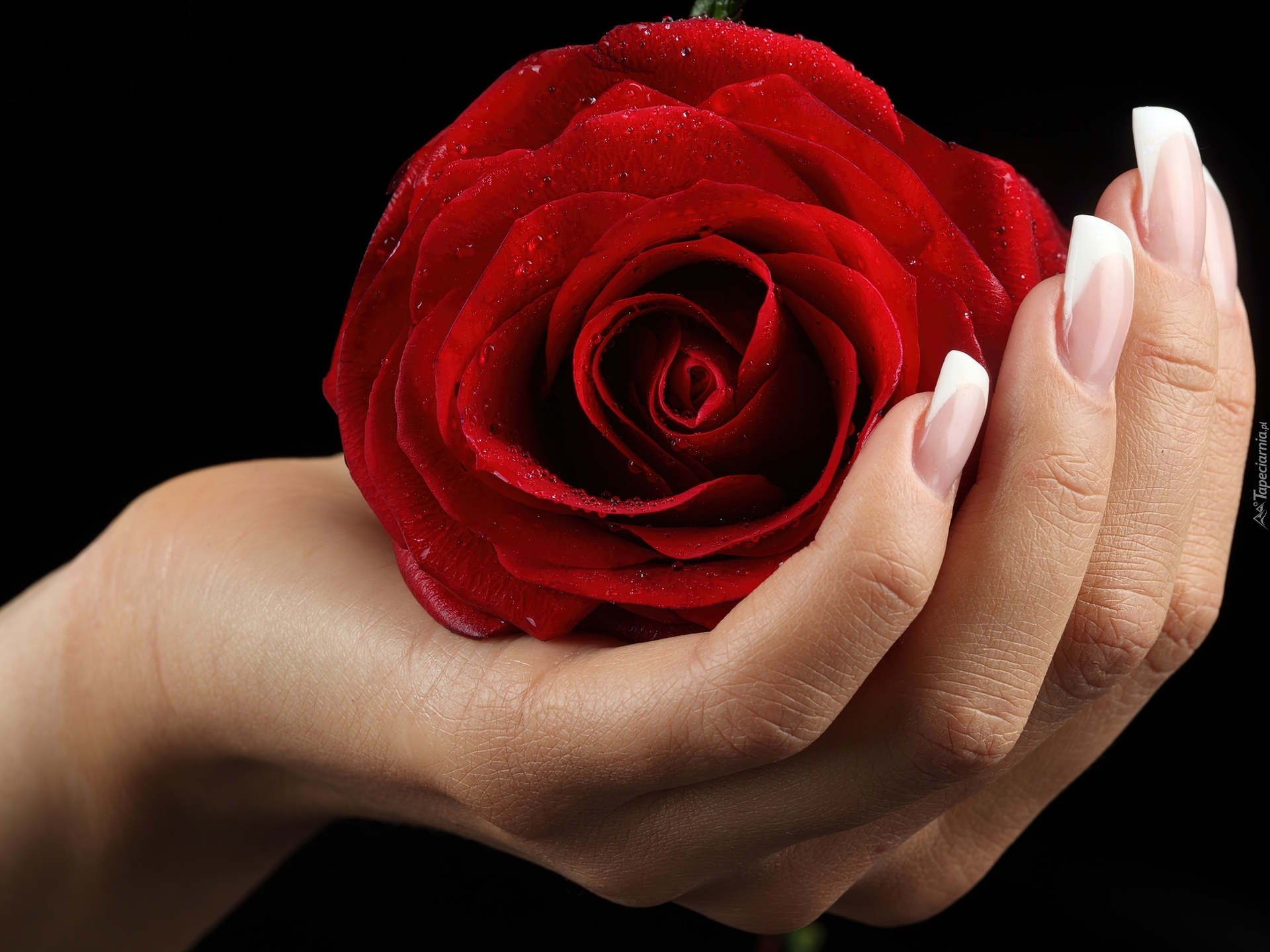 Edytor tapety: Czerwona, Róża, Dłoń