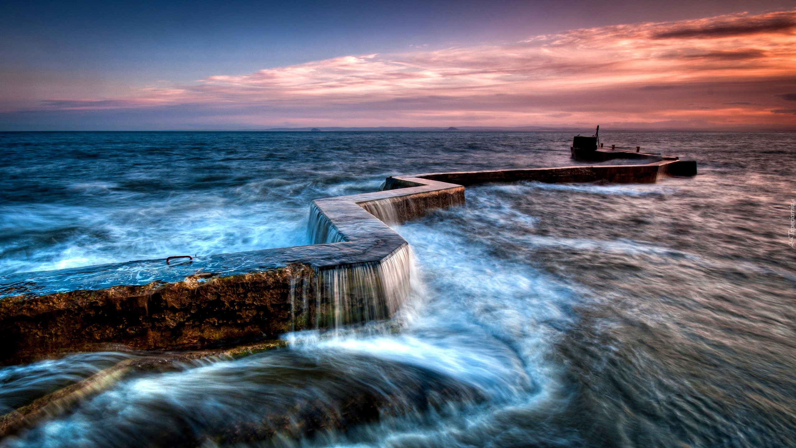 Edytor tapety: Zachód, Słońca, Morze, Falochron
