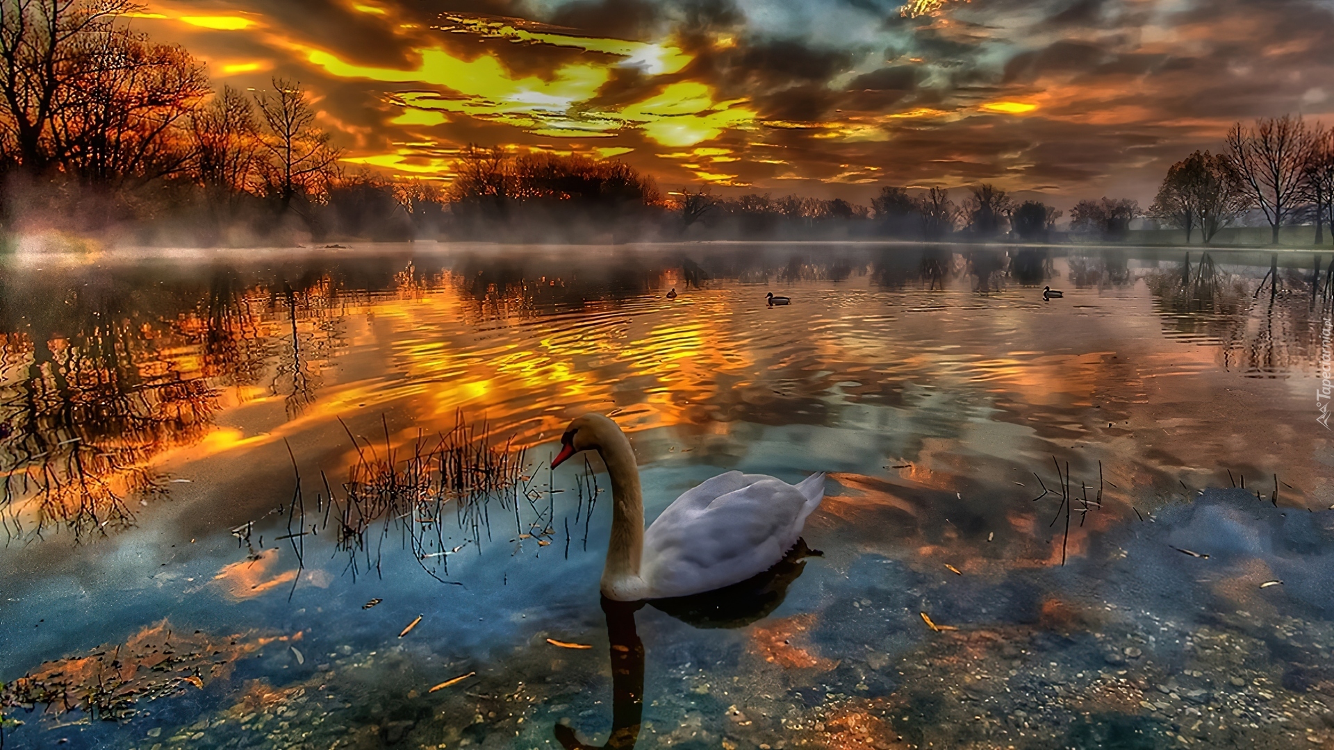 Edytor tapety: Łabędź, Woda, Zachód, Słońca