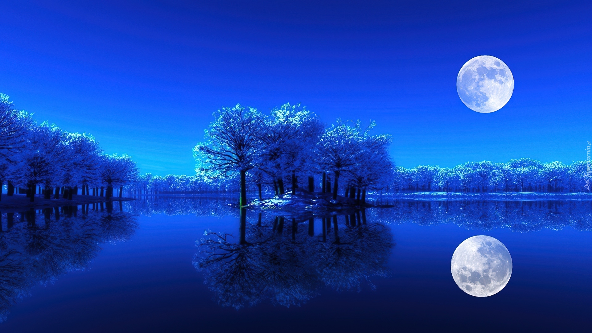 Edytor tapety: Noc, Księżyc, Woda, Drzewa