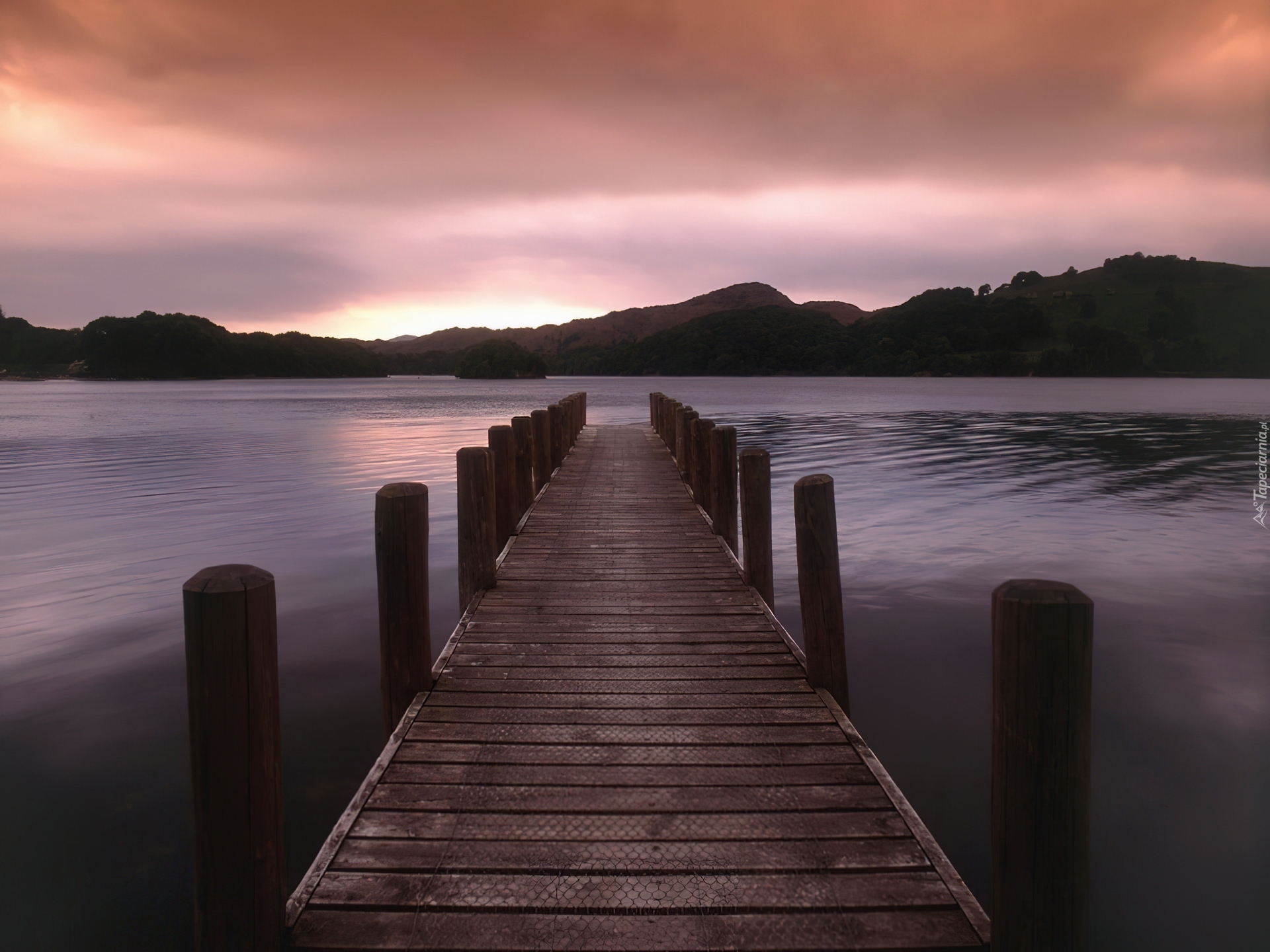 Edytor tapety: Jezioro, Molo, Zachód, Słońca