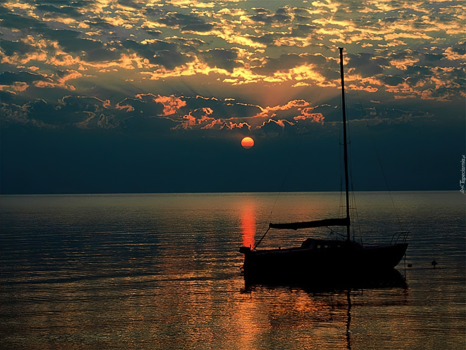 Edytor tapety: Morze, Zachód, Słońca, Jacht