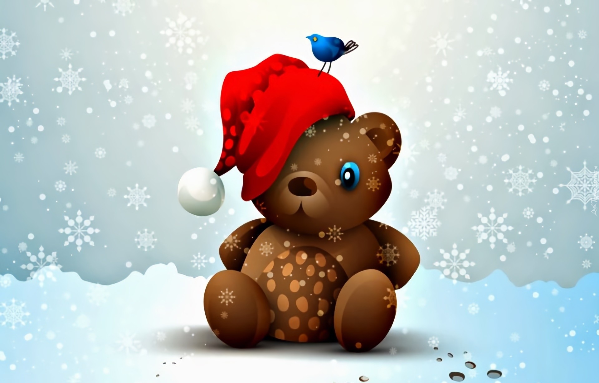 Edytor tapety: Misio, Mikołaj, Ptaszek, Śnieg