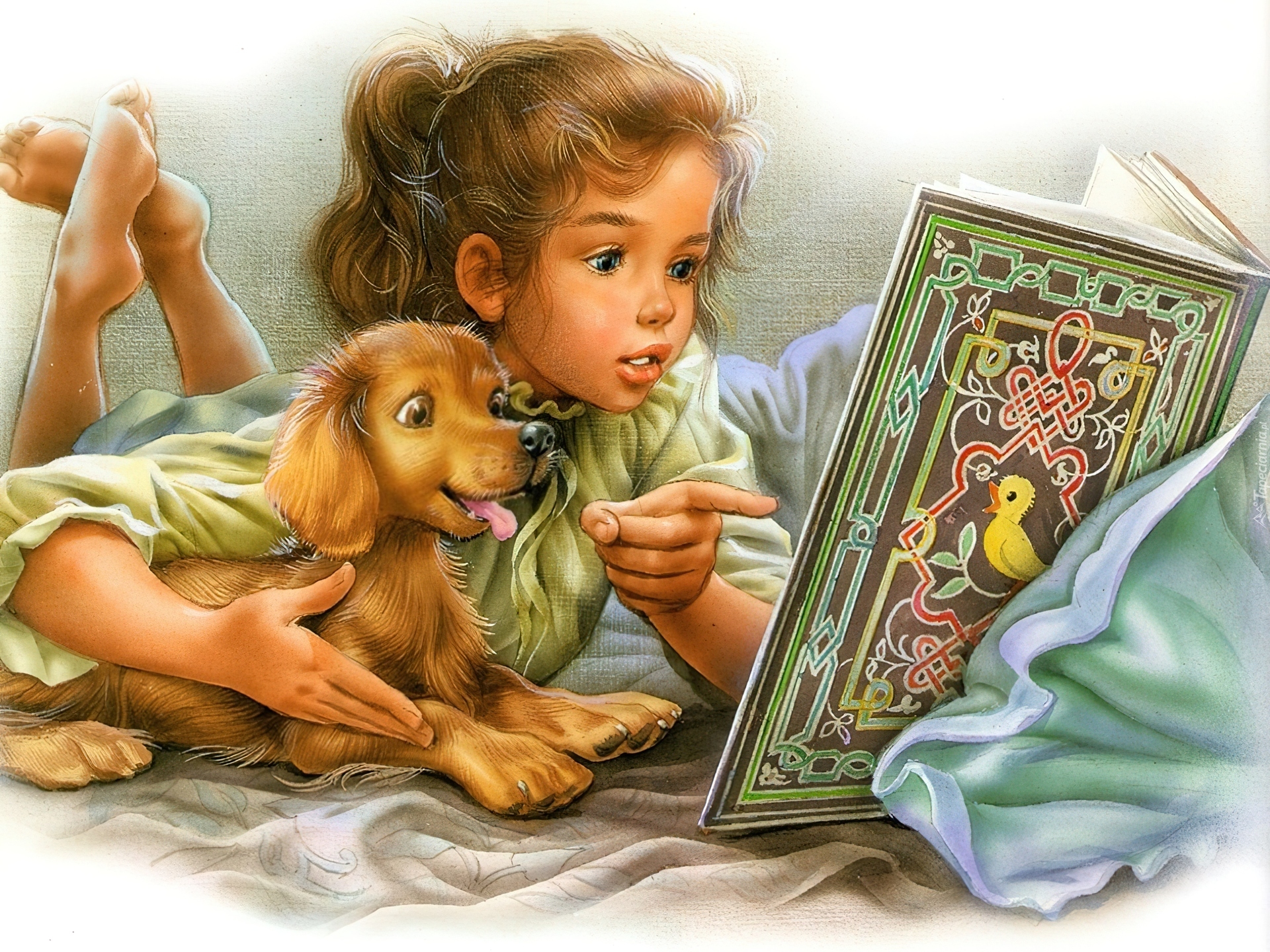 Edytor tapety: Dziewczynka, Piesek, Książka, Donald Zolan