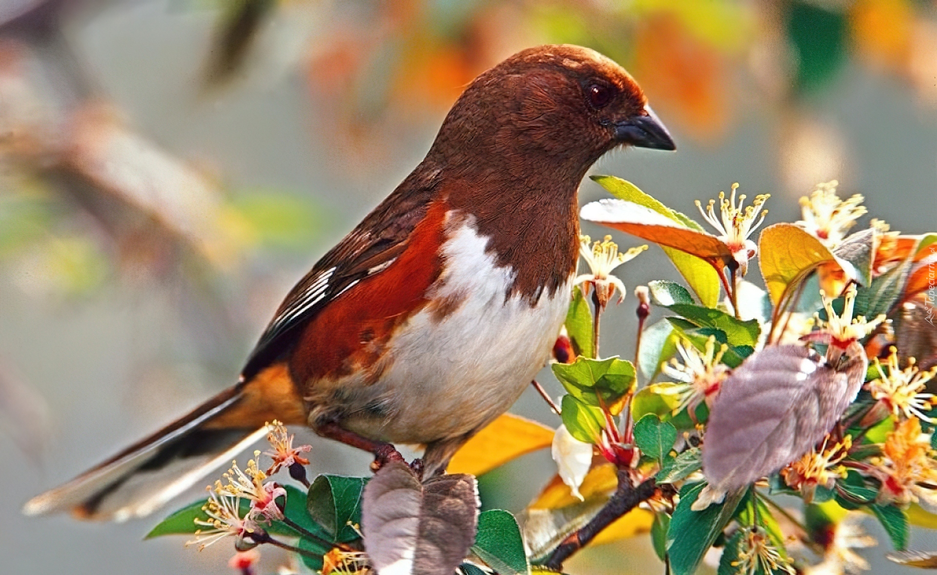 Edytor tapety: Ptaszek, Rudy, Gałązka