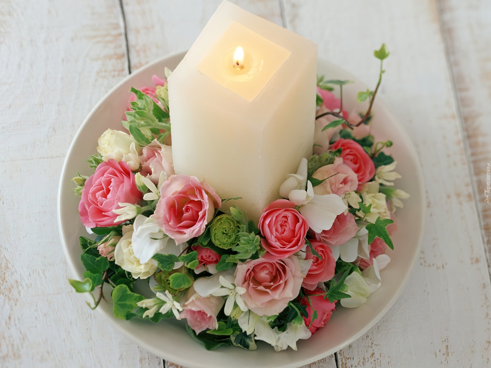 Edytor tapety: Dekoracja, Kwiaty, Świeca