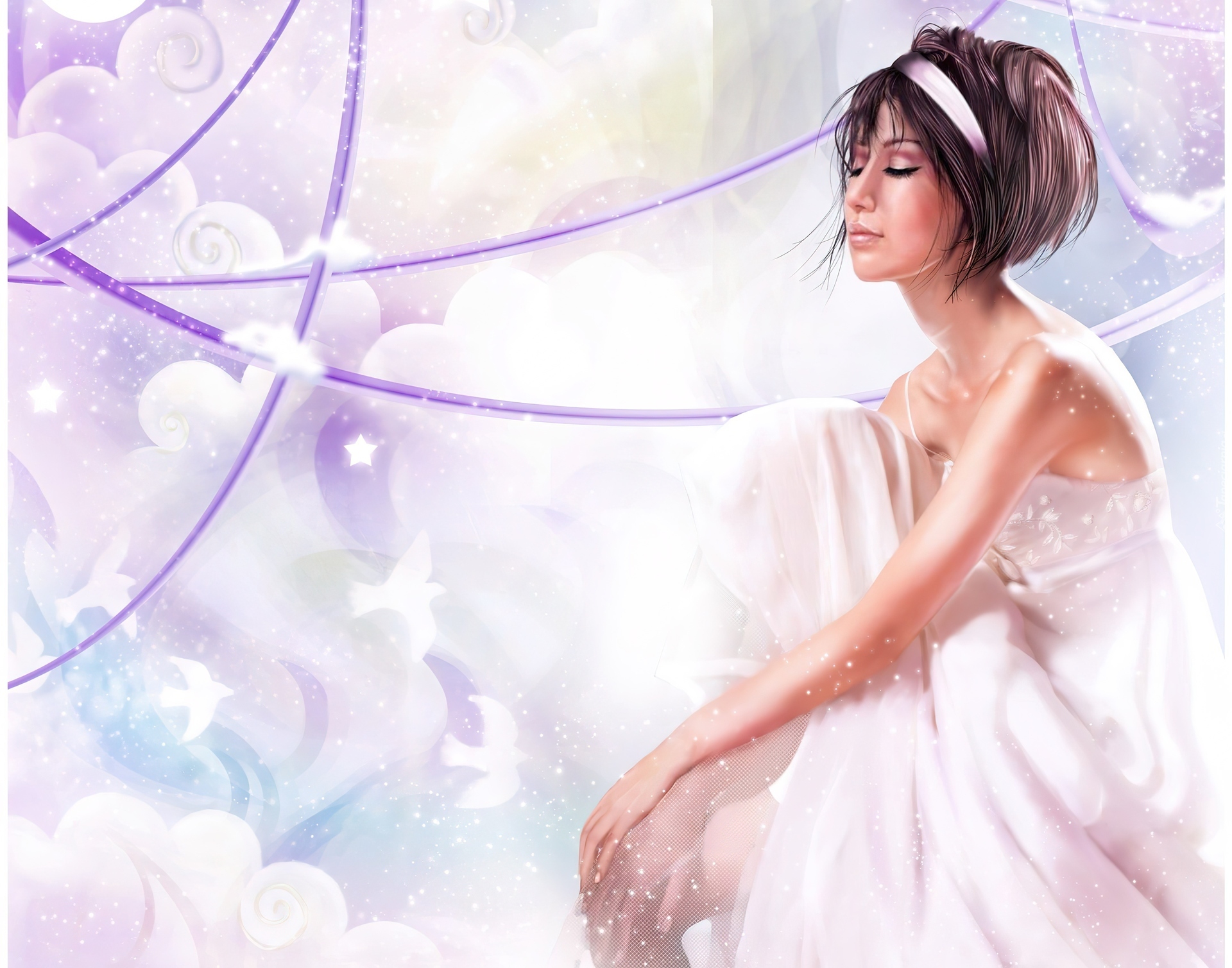 Edytor tapety: Dziewczyna, Biała, Suknia, Grafika