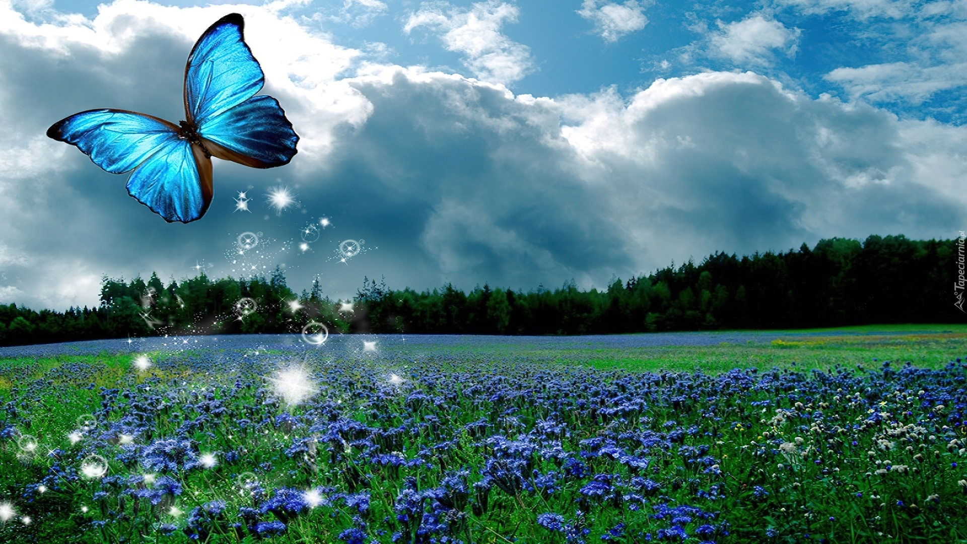 Edytor tapety: Motyl, Kwiatki, Trawa, Łąka