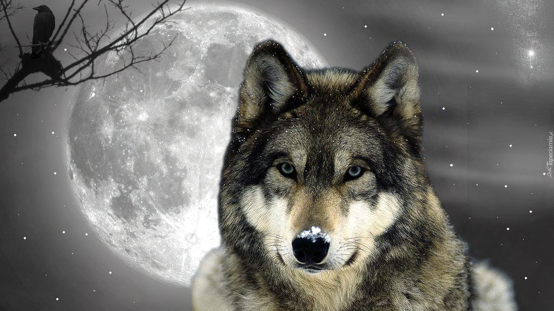 Edytor tapety: Wilk, Księżyc, Noc