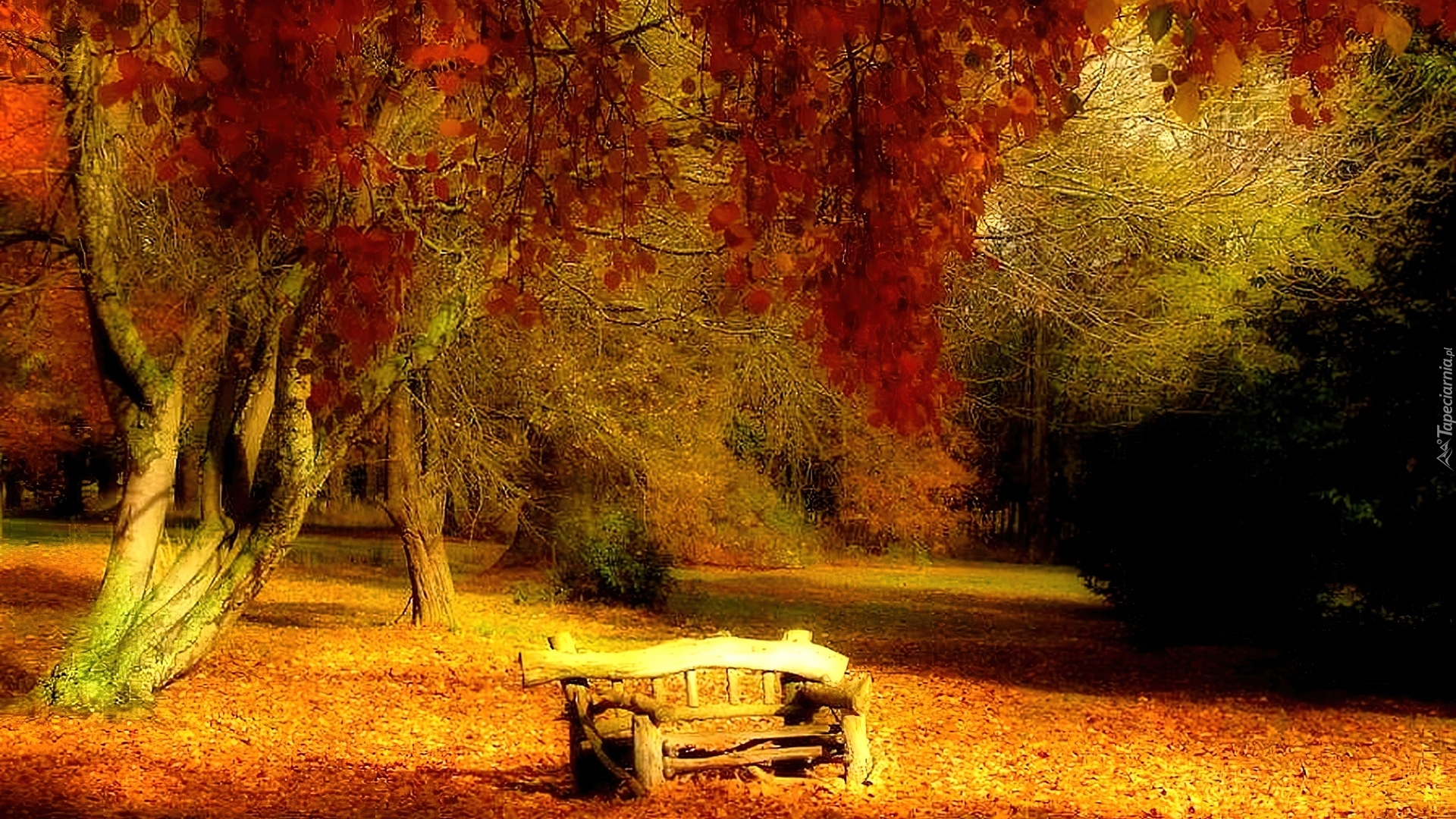 Edytor tapety: Jesień, Ławka, Liście