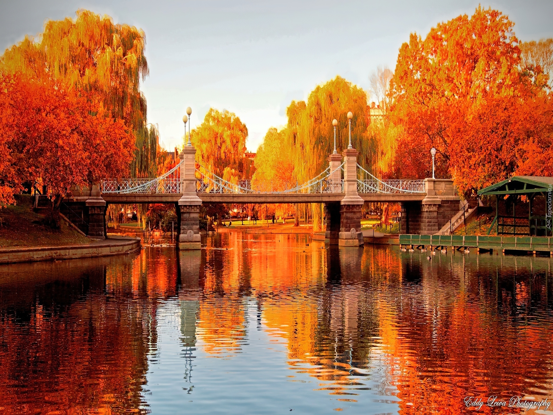 Edytor tapety: Rzeka, Most, Drzewa