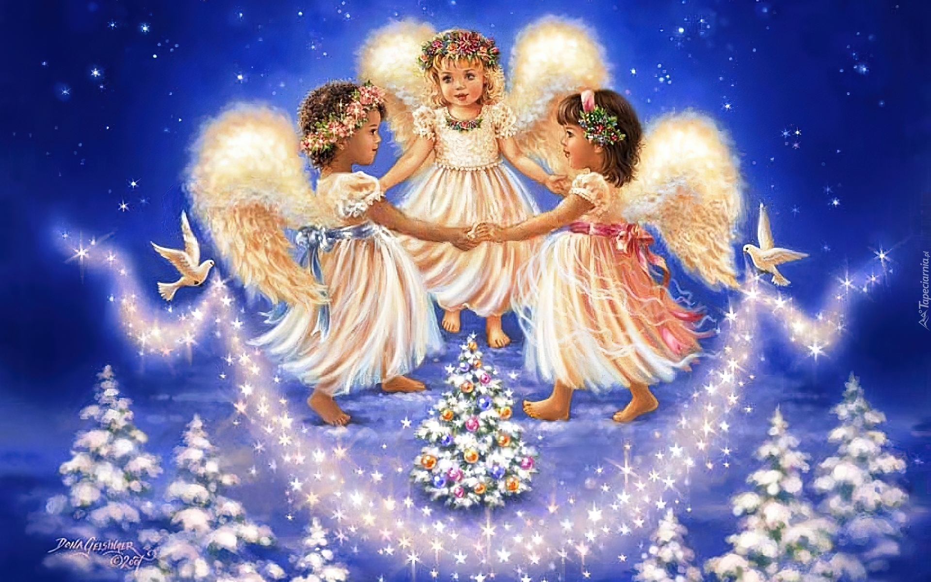 Edytor tapety: Dziewczynki, Aniołki, Choinki