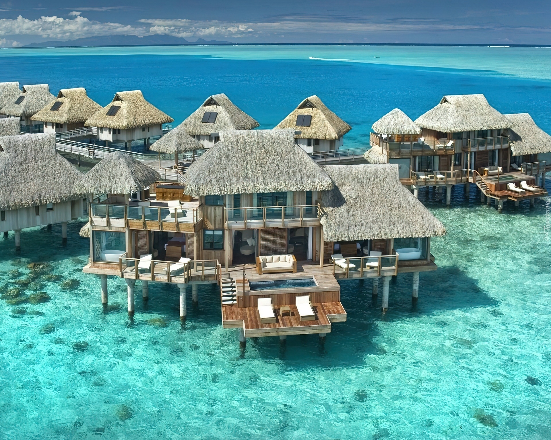 Edytor tapety: Wyspy, Bora Bora, Domki