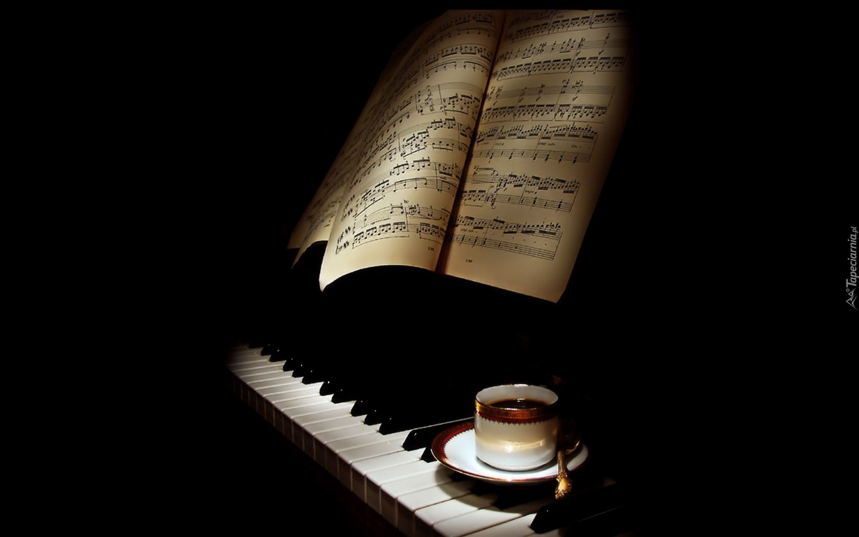 Edytor tapety: Pianino, Nuty, Kawa