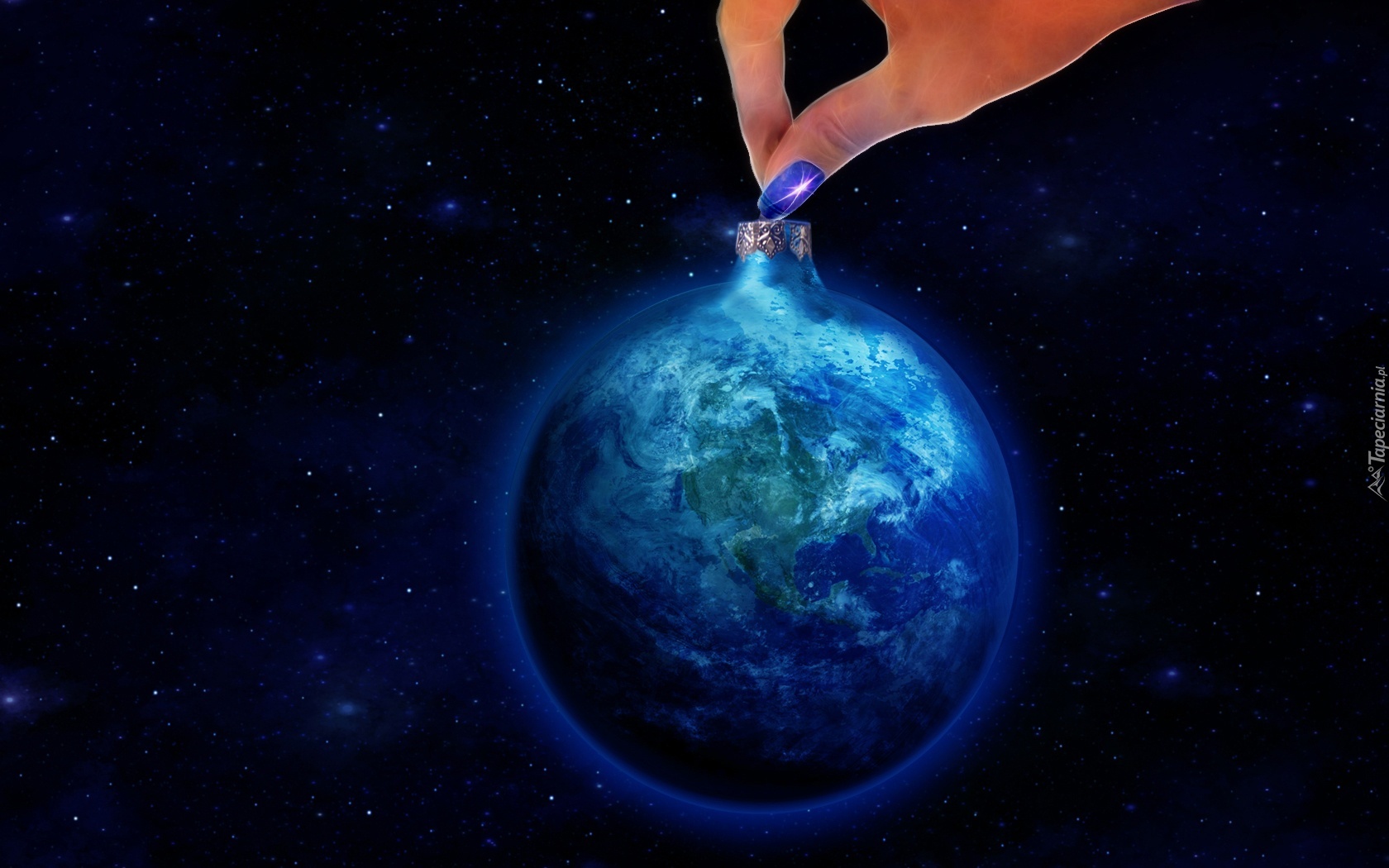 Edytor tapety: Bombka, Ziemia, Gwiazdy, Świąteczne