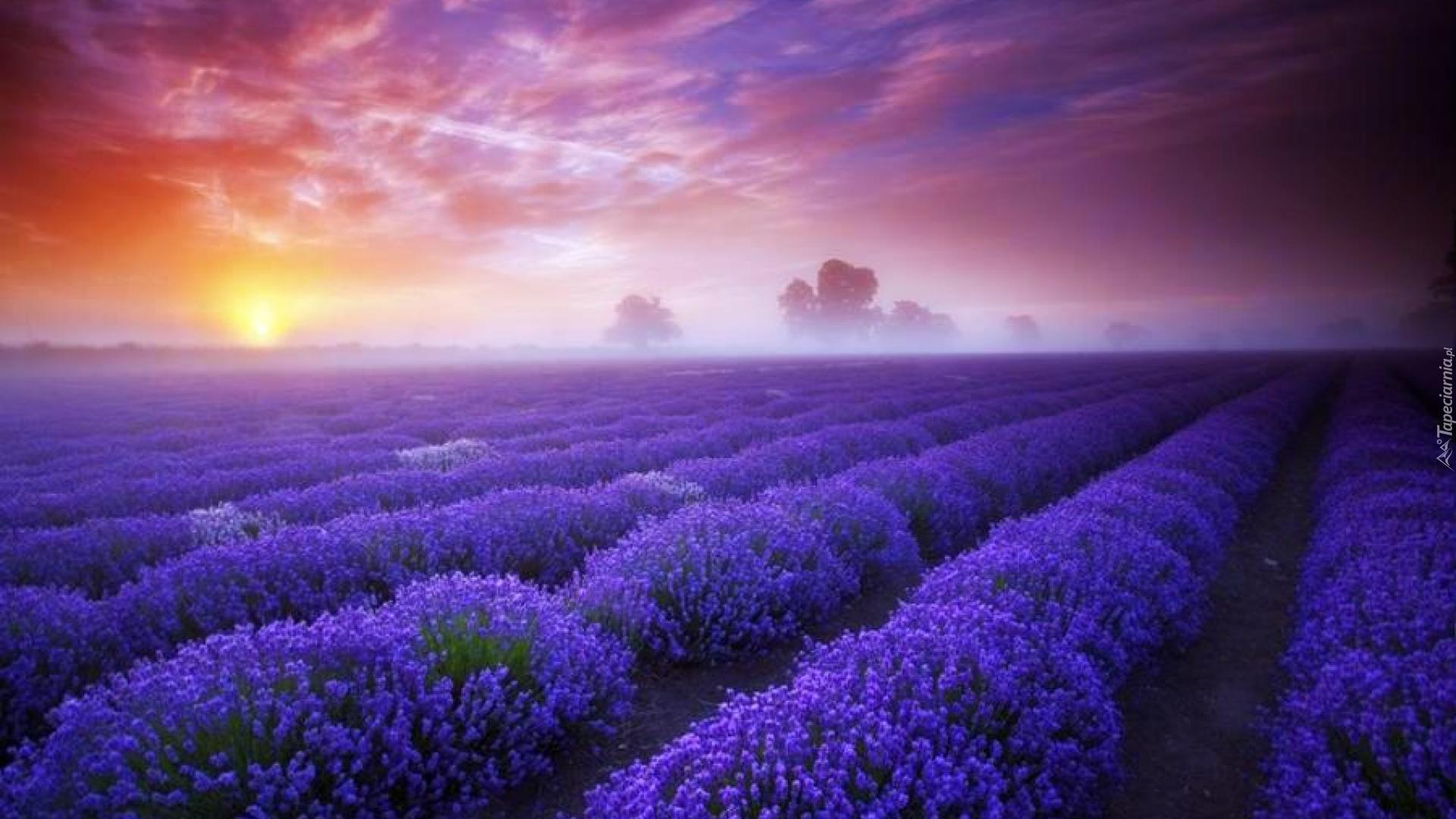 Edytor tapety: Zachód, Słońca, Lawendowe, Pole