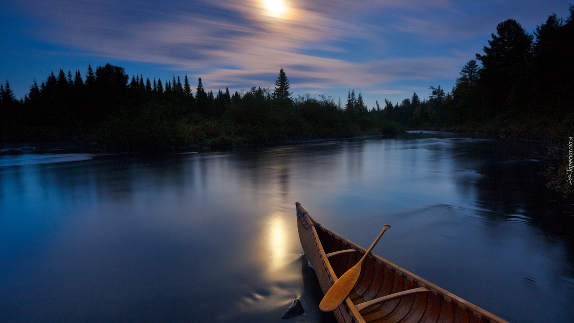 Edytor tapety: Las, Rzeka, Zachód, Słońca, Czółno