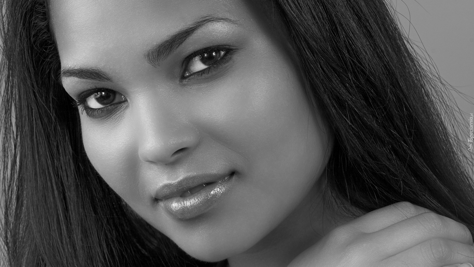Edytor tapety: Uśmiechnięta, Kobieta, Czarno-Białe