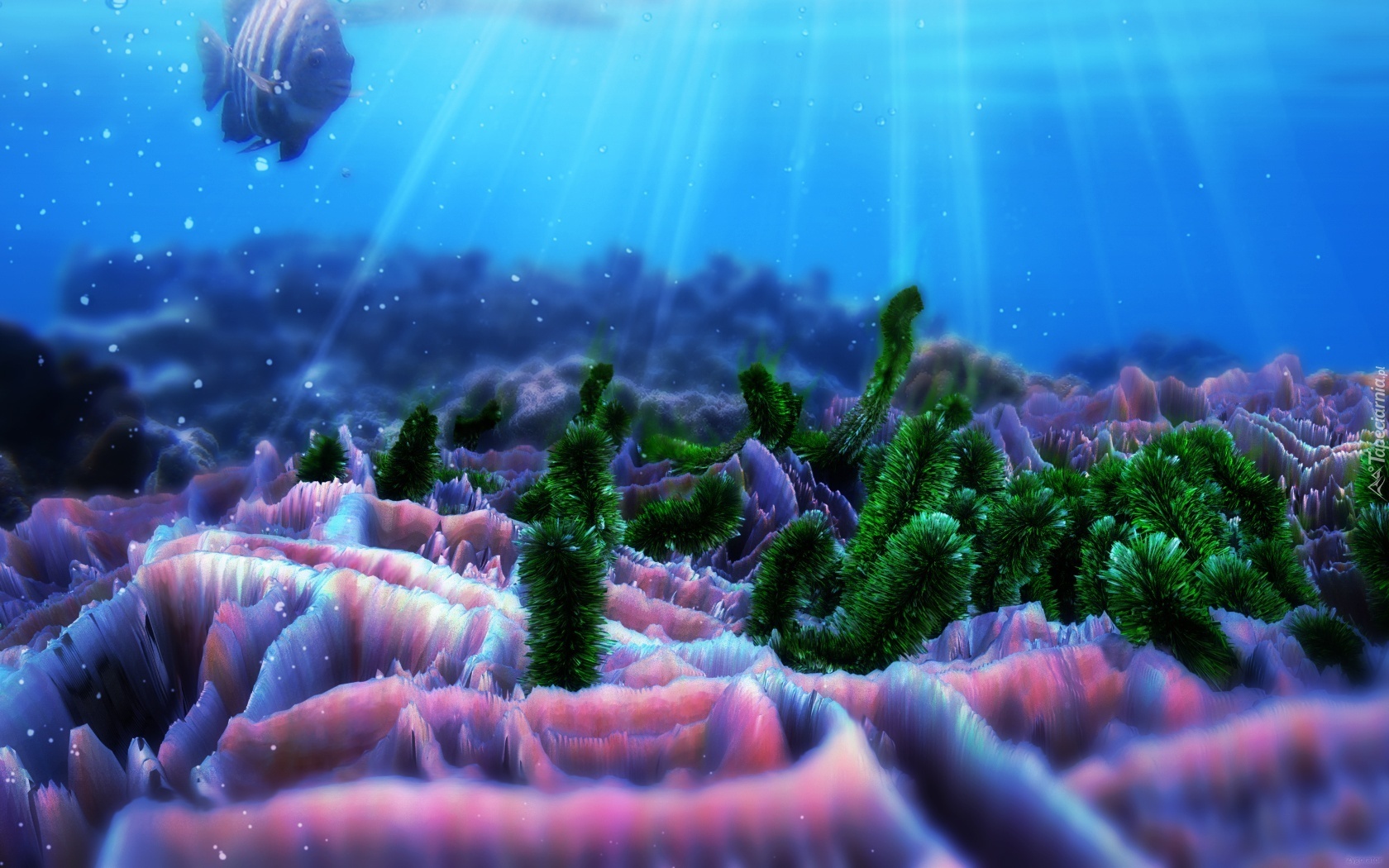 Edytor tapety: Dno, Oceanu, Promienie, Słońca, Rafa