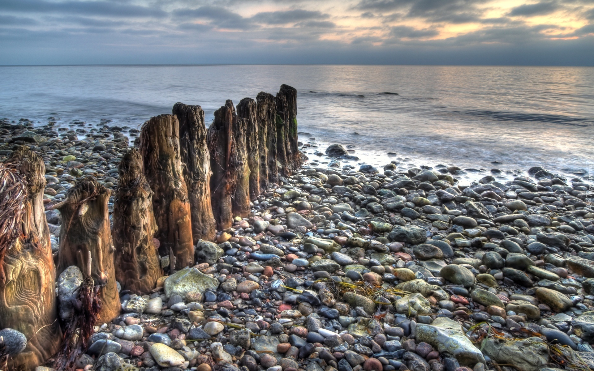 Edytor tapety: Kamienista, Plaża, Pale, Morze, Chmury