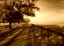 Edytor tapety: Wiejska, Droga, Pola, Drzewa, Jesień
