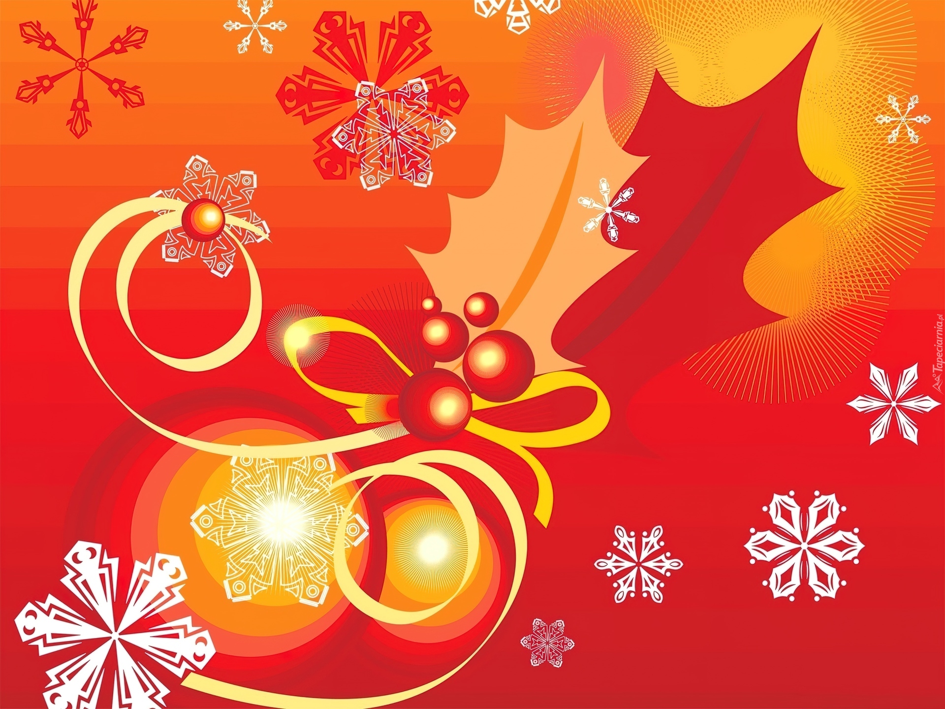 Edytor tapety: Ostrokrzew, Wstążka, Płatki, Śniegu