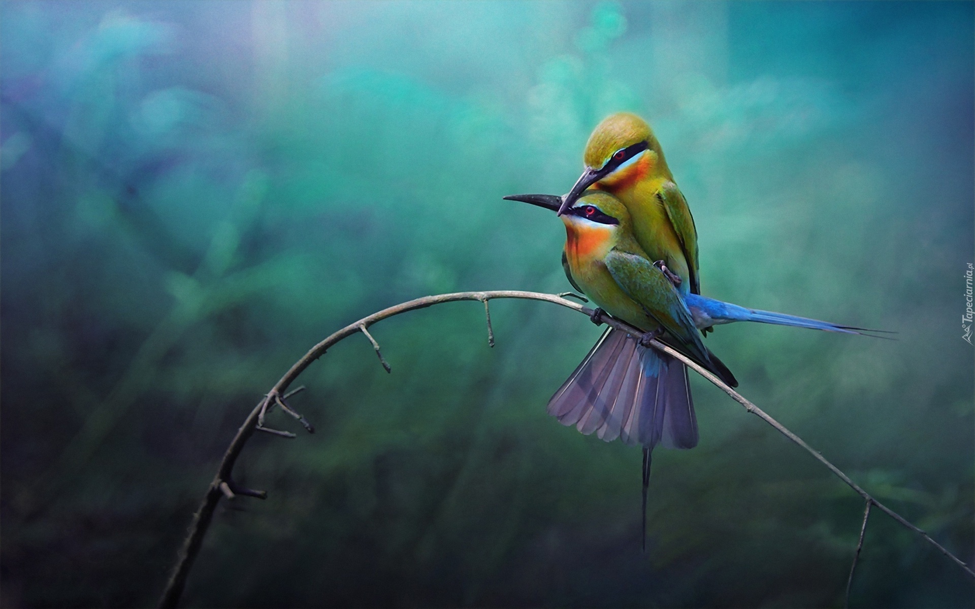 Edytor tapety: Gałązka, Dwa, Ptaki