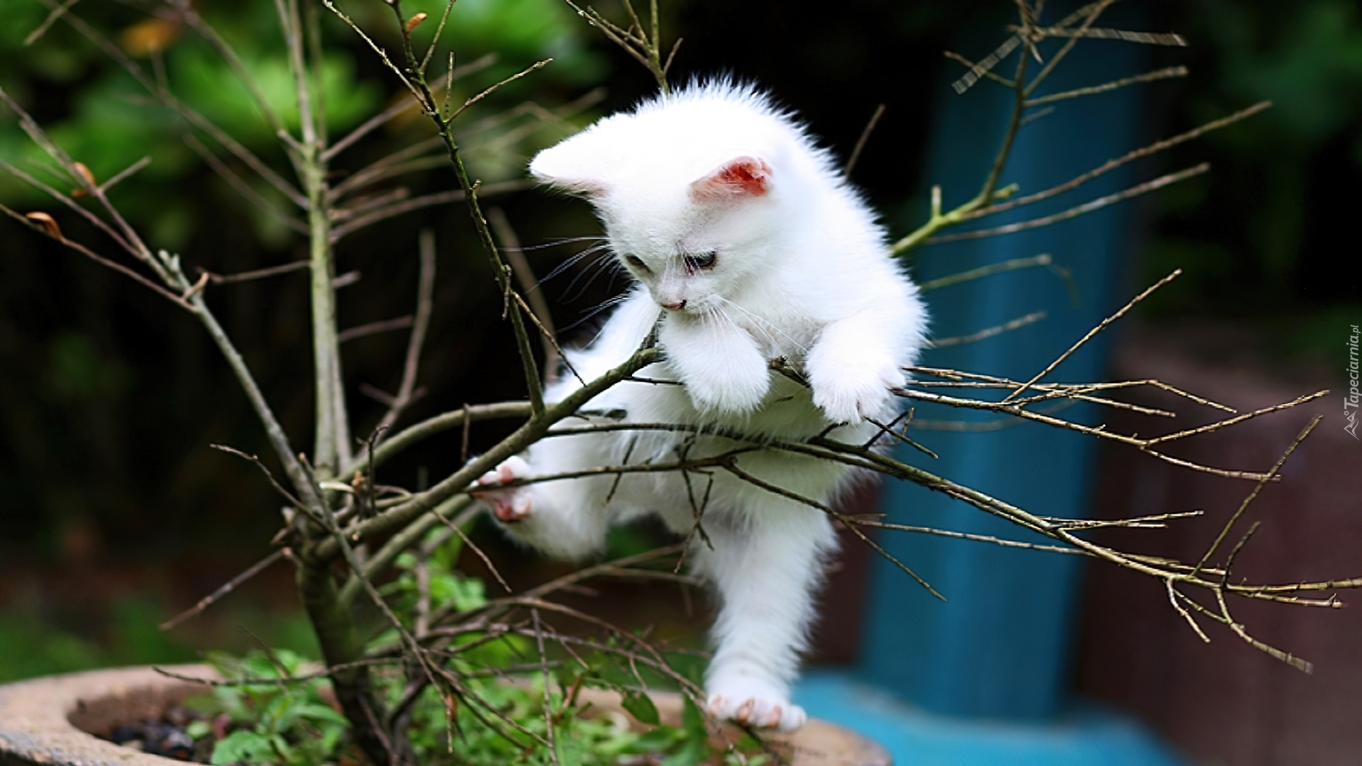 Edytor tapety: Kotek, Biały, Drzewko