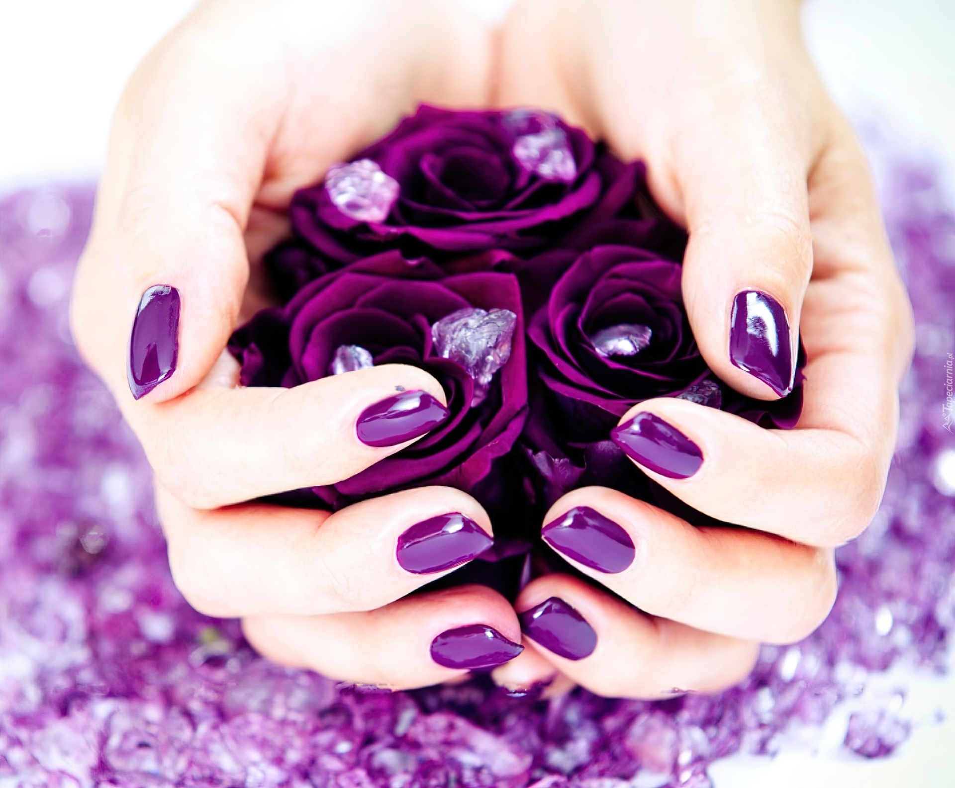 Edytor tapety: Dłonie, Purpurowe, Róże