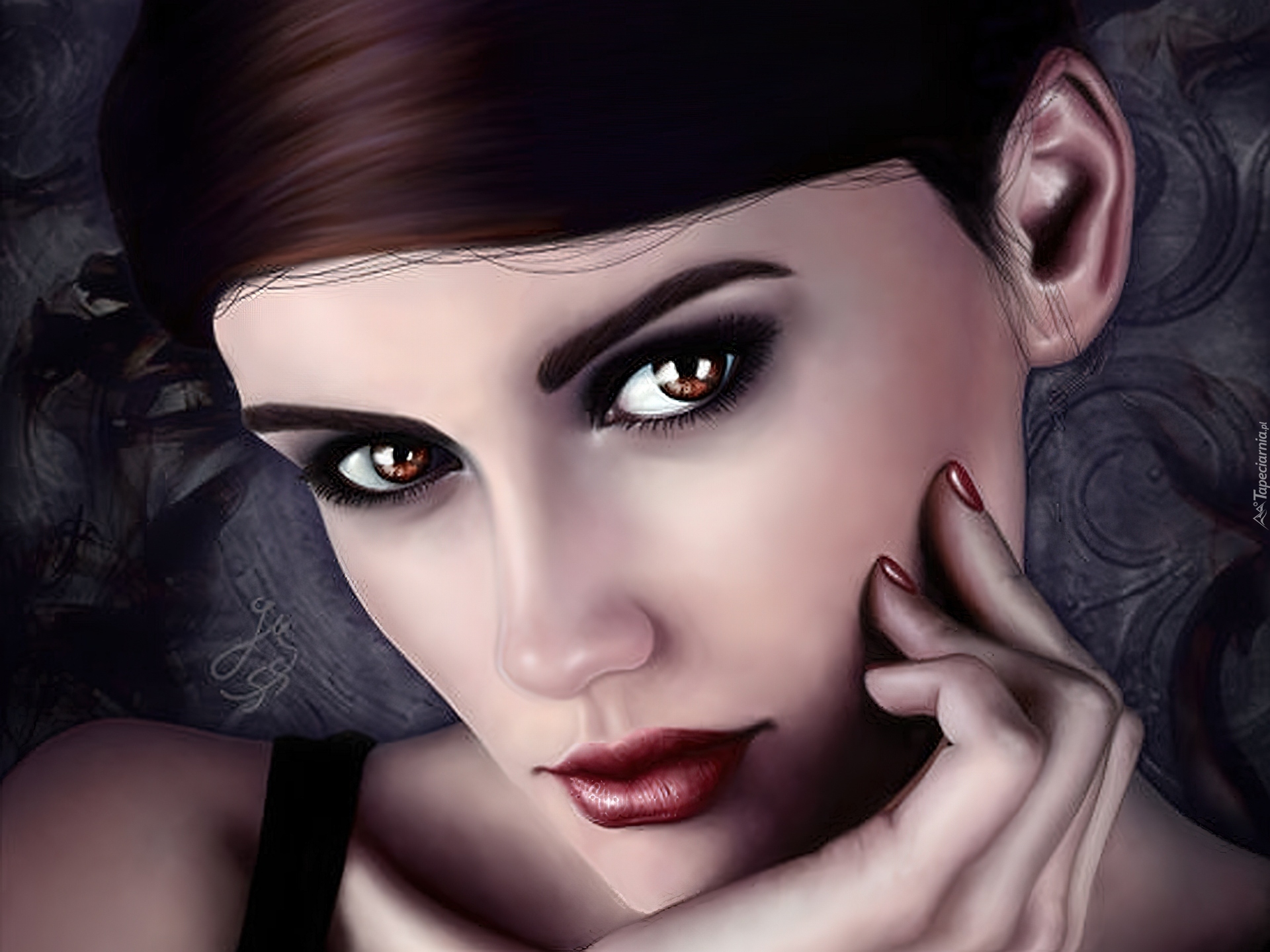 Edytor tapety: Dziewczyna, Palce, Spojrzenie