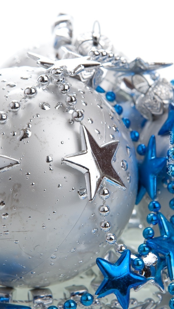 Edytor tapety: Białe bombki niebieskie gwiazdki