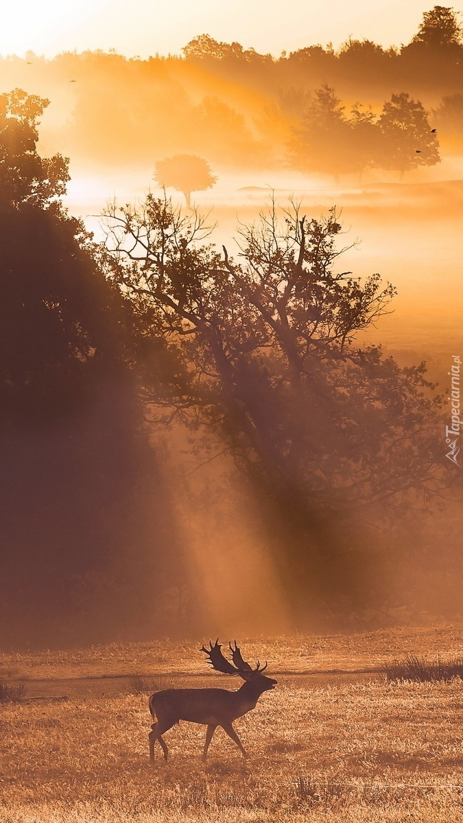 Edytor tapety: Jeleń spacerujący w promieniach słońca