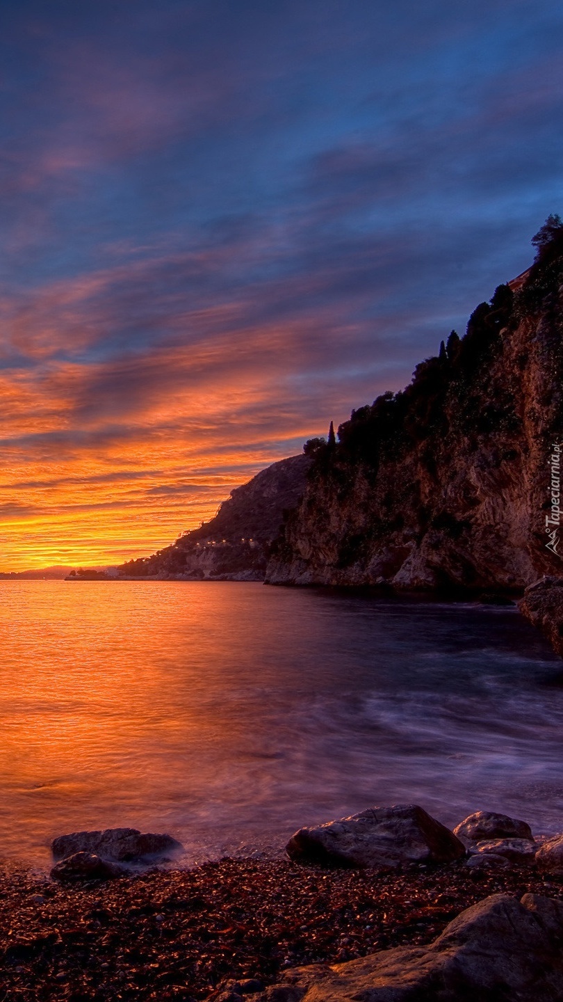 Edytor tapety: Nadmorski klif w zachodzącym słońcu