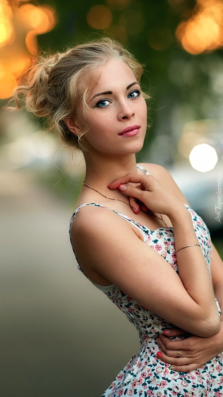 Edytor tapety: Blondynka w letniej sukience w kwiatki
