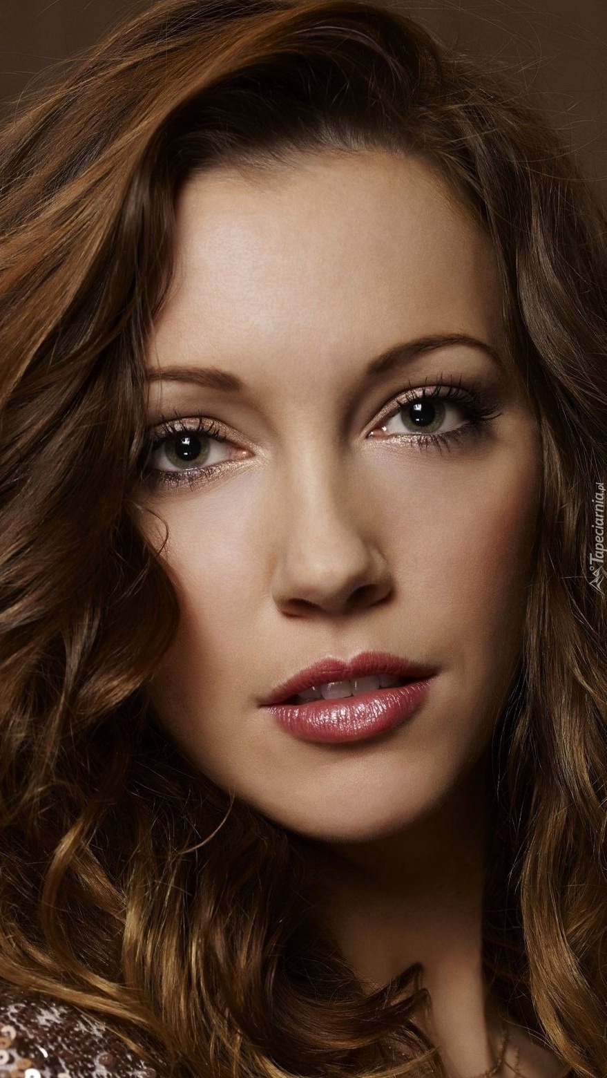 Edytor tapety: Szatynka w delikatnym złotym makijażu
