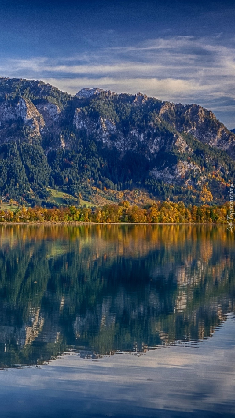 Edytor tapety: Jesienne drzewa nad brzegiem górskiego jeziora