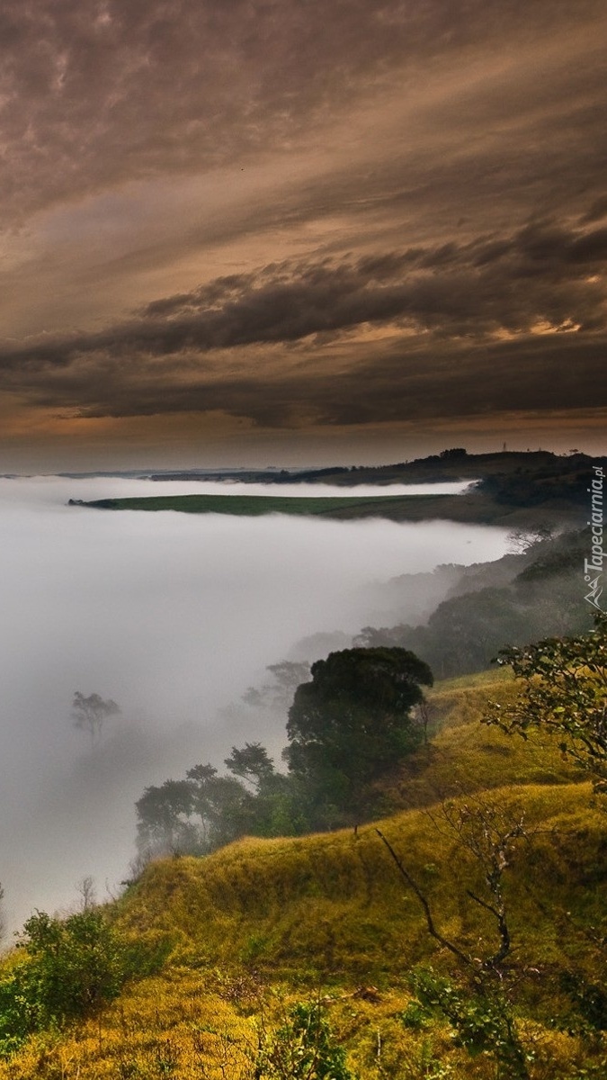 Edytor tapety: Mgła otoczyła drzewa w dolinie