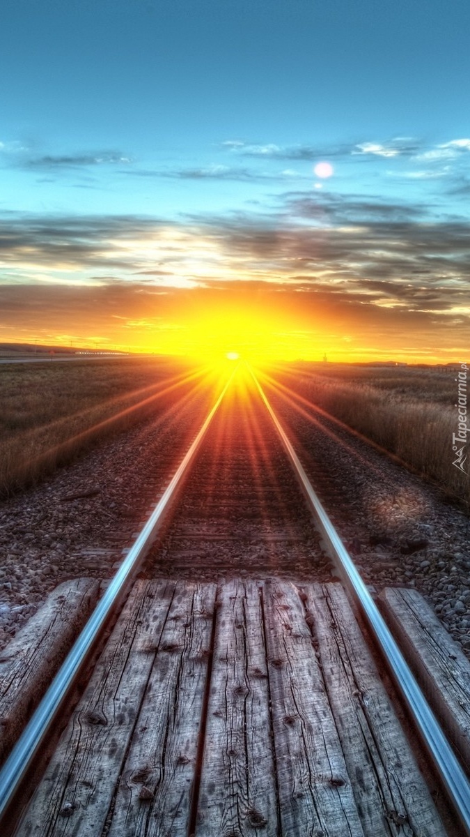 Edytor tapety: Słońce oświetlające tory kolejowe