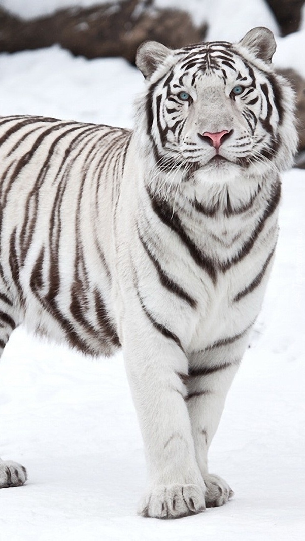Edytor tapety: Biały tygrys idealnie pasujący do śniegu.