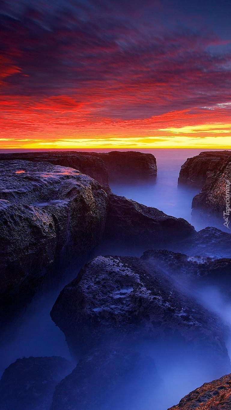 Edytor tapety: Skały nad morzem we mgle