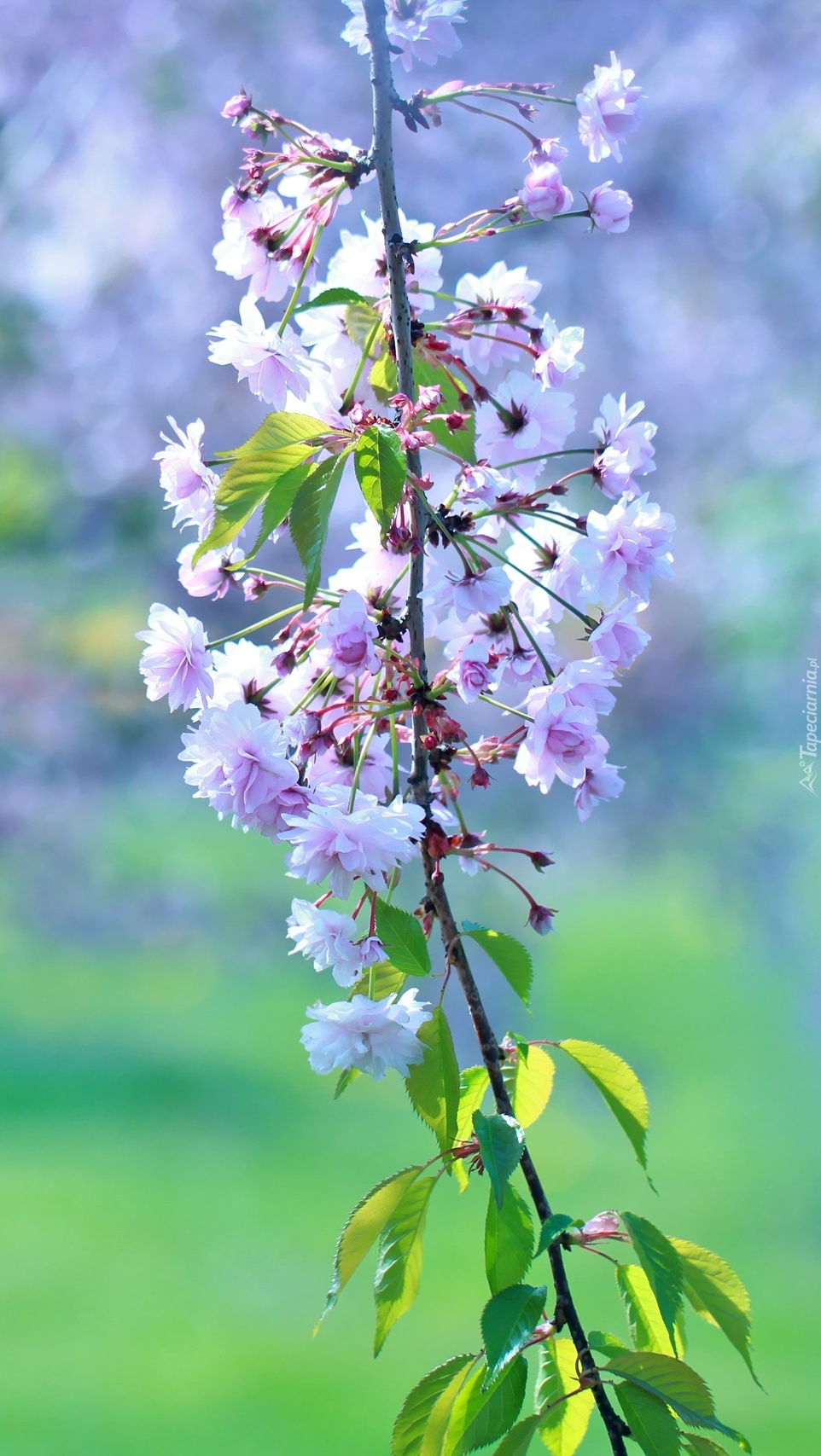 Edytor tapety: Obsypana kwiatami gałązka wiśni
