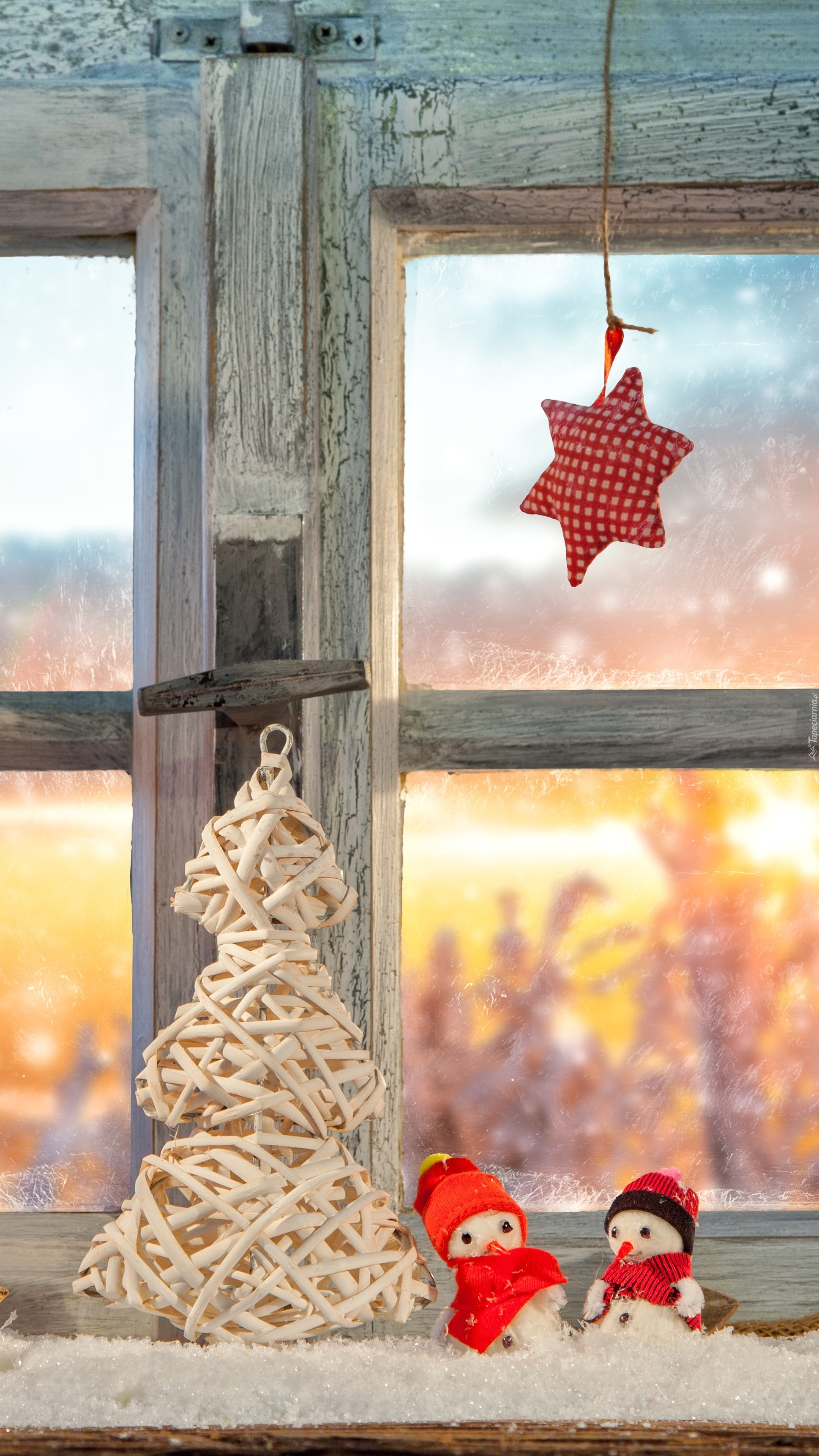 Edytor tapety: Okno ozdobione choinką i bałwankami