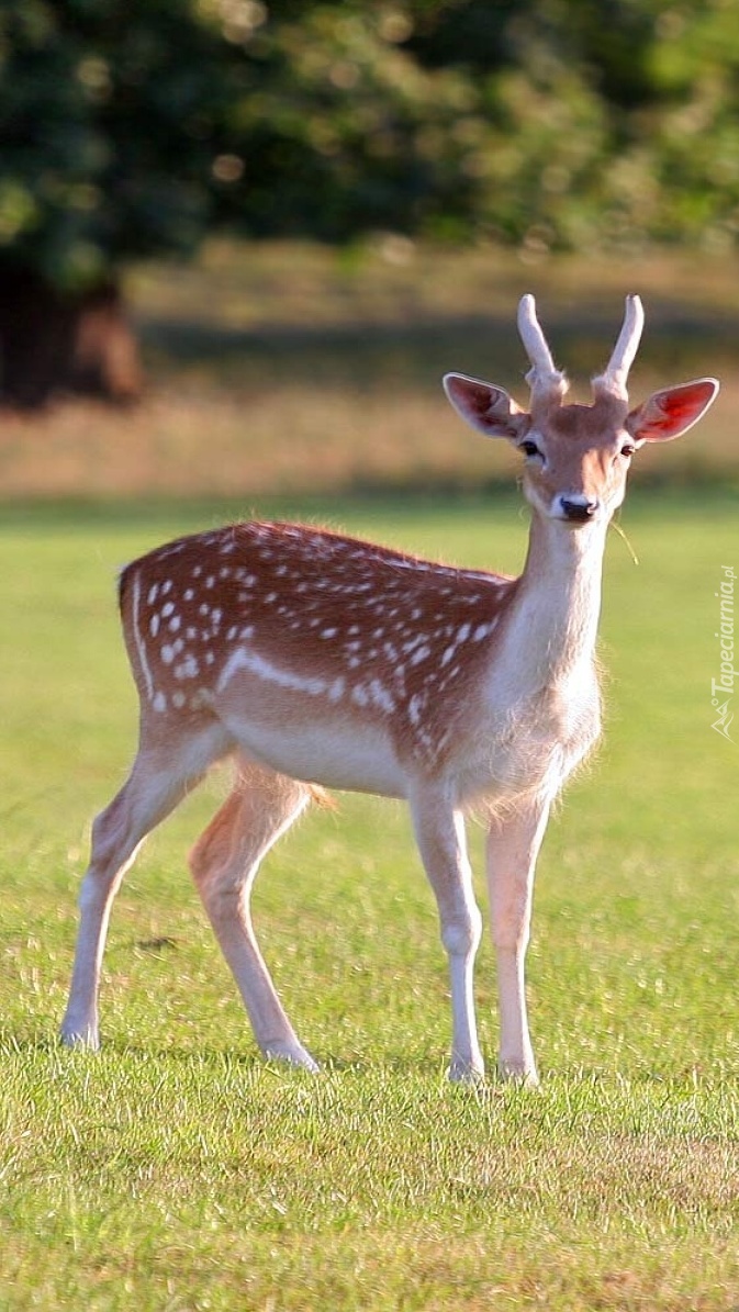 Edytor tapety: Jelonek z trawą w pysku
